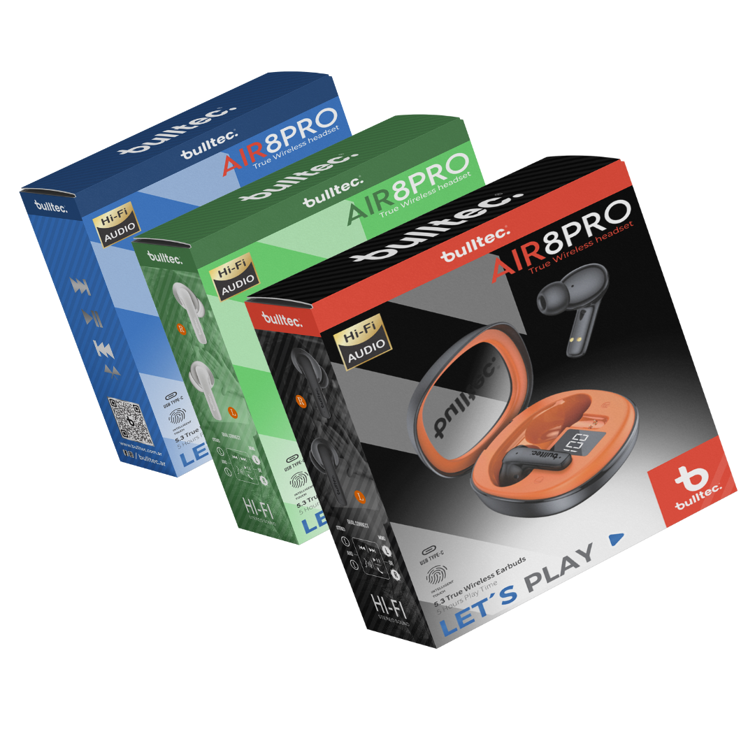 Los Auriculares Inalámbricos BT AIR8PRO BULLTEC ofrecen una experiencia de sonido premium con tecnología True Wireless 5.3 y audio Hi-Fi. Su diseño compacto y ergonómico brinda comodidad durante todo el día, mientras que su avanzada cancelación pasiva asegura una inmersión total en tu música o llamadas. Con batería de larga duración y estuche de carga rápida, son el aliado perfecto para entrenamientos, trabajo o viajes.