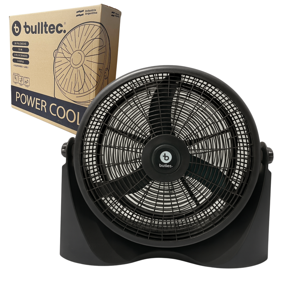 El Ventilador TURBO Power Cool BULLTEC 20” está diseñado para ofrecer la máxima potencia de ventilación con un funcionamiento ultra silencioso. Gracias a sus 75W de potencia y sus 3 aspas plásticas aerodinámicas, genera un flujo de aire constante y uniforme que refresca cualquier ambiente con eficiencia y bajo consumo eléctrico.